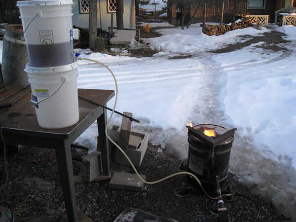 Utilice un tanque de propano con un regulador ajustable . Un tanque de barbacoa está muy bien pero los reguladores no ajustables que vienen con ellos no funcionan bien para esto. Utilizar una manguera flexible con un desbloqueo rápido de la hornilla. También podría sondear junto con tubos de acero.