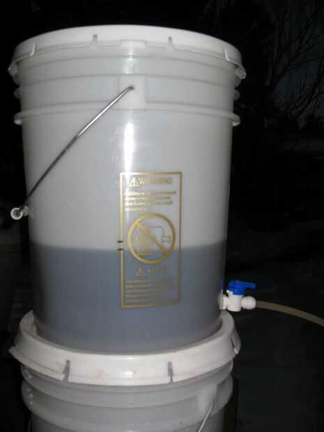 Cubo de taladro y rosca un agujero de 5 galones para la válvula de 3/8"... También hice una "tuerca" de masonite para fijarla en el interior. Coloque un trozo de tubo transparente. Si tienes suerte el tubo cabrá perfectamente sobre la tubería de cobre. Si no Haz el hardware de plomería derecho y conectar los dos.