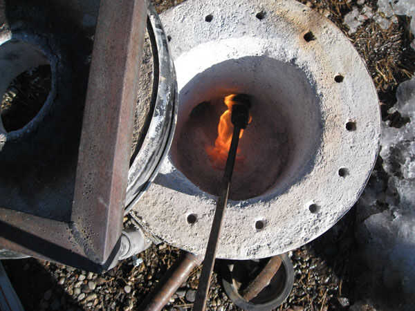 Encender la antorcha (yo uso un trapo empapado en atado a una barra de metal con el alambre de WD-40) y meter en el horno.