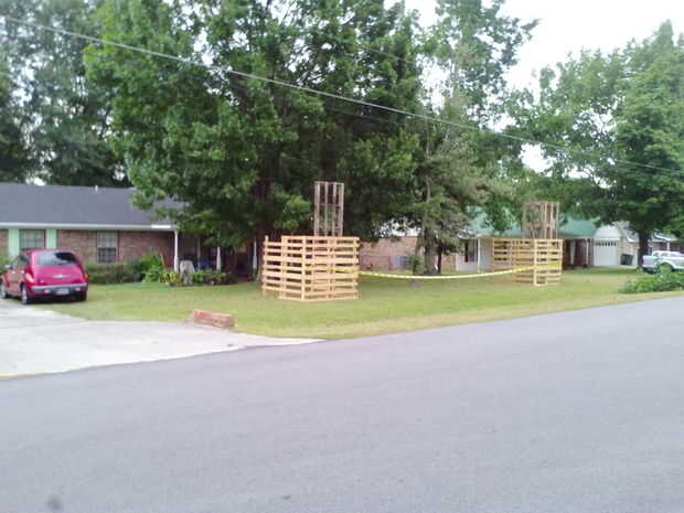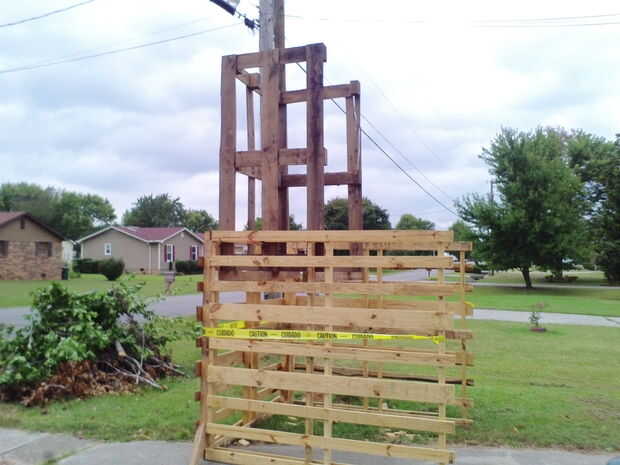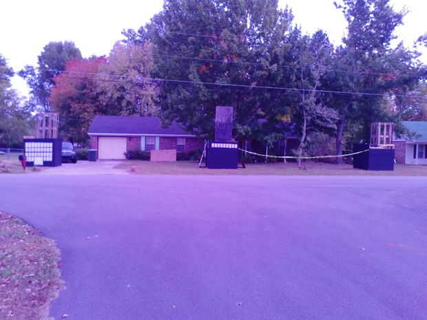 Estoy agregando algunas fotos más de la construcción de Halloween para ilustrar cómo construí y forrado de las torres. Tenía otro pedazo de suerte por publicidad en Craigslist yo pidiendo madera de desecho, y recibí una respuesta para decirme que se está desmontando una casa embrujada y si pregunté realmente agradable, que el Gerente del proyecto me podría dar algunos paneles de madera contrachapada. Acabé con unas 15 hojas en distintos grados de condición. No era un factor importante, ya que la construcción iba a ser temporal, y siguió adelante y utiliza un par de galones de pintura negra mate en todas las superficies de madera contrachapada de las torres para cubrir cualquier deficiencia. No estaba tan contento con mi resultado final, pero mucho de eso tuvo que ver con quedarse sin tiempo para el proyecto. Pero aprendí una valiosa lección: construyendo un marco tamaño cobertizo puede ser super fácil y muy barato si pones tu mente a él!
