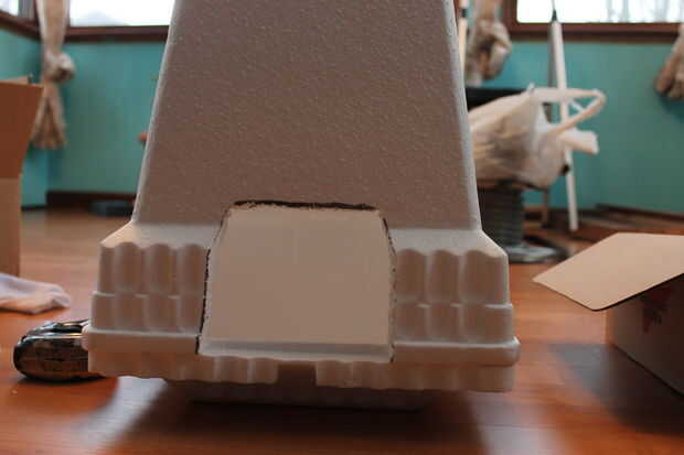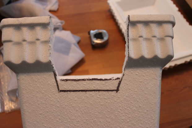 4. hice mi apertura demasiado pequeña por lo que me quité un poco más. Creo que mi tamaño de la abertura era 6" ancho por 7-8" alto. Imagen 5-6