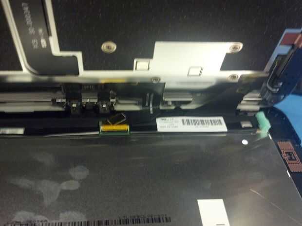 Una vez que se han abierto las piezas delanteras y traseros tendremos que desconectar la pantalla del dispositivo.  en este caso hay dos cables planos que necesitan ser removidas.  Hacer esto abriendo el conector y quite la cinta que sostiene en su lugar.