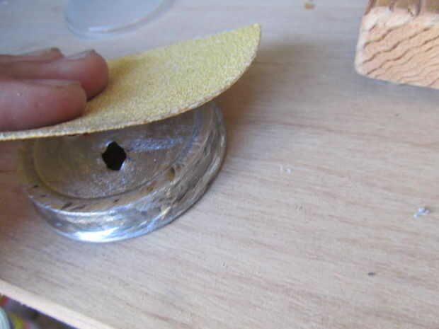 Ahora marque y perfore agujeros para los LEDs en la tapa. Empezar a lijar la tapa, la parte transparente de plástico y las tapas de los LEDs. Corte un pequeño agujero para los cables ir al soporte de la batería.