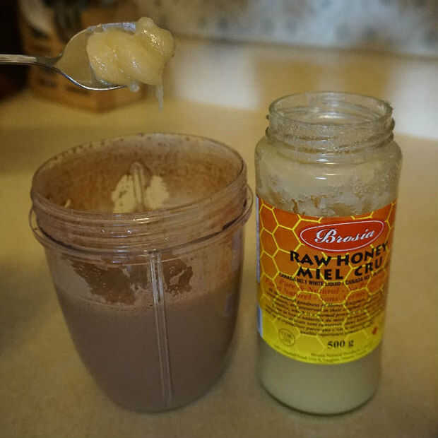 Probar y ajustar a tus gustos. Personalmente, no agrego ningún edulcorante, pero si quieres que alguna dulzura agregar miel o edulcorante y pop vuelva a mezcla durante 10 segundos.