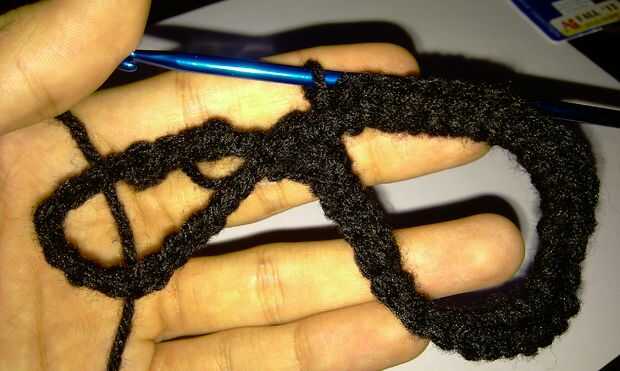 (esto deja 2 puntadas a cruzar el puente de la nariz)