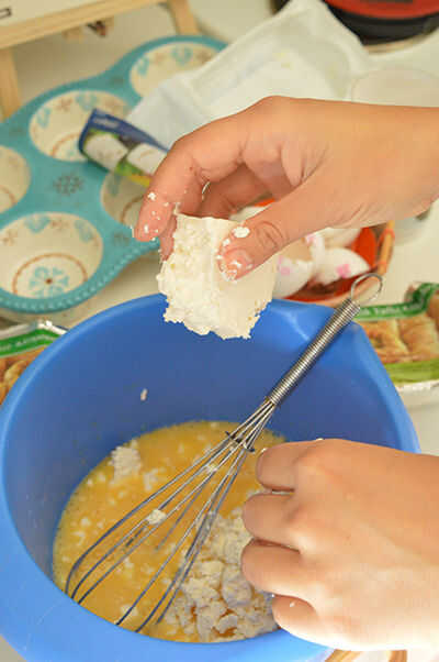 Paso 2: Batir los huevos por la mano en un bol y agregar el queso