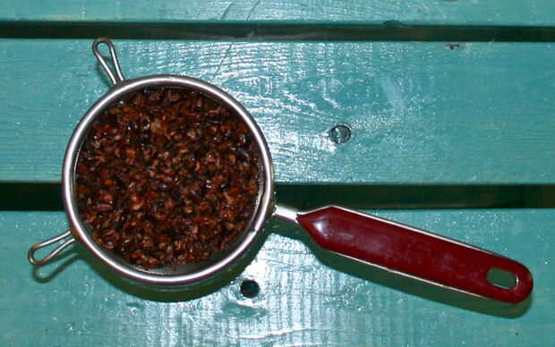 Sobre una media taza de semillas de cacao mojado se va a añadir un cuarto de taza de néctar de agave y aproximadamente tres cucharadas de agua. Mezclar hasta que esté suave, luego más mezcla hasta que quede más lisa.