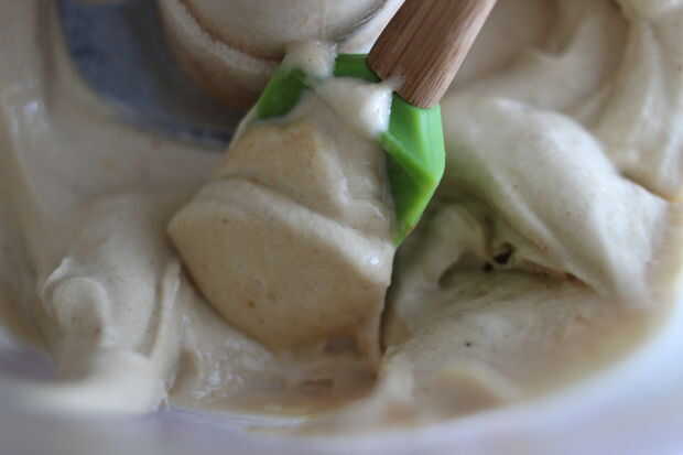 Alimentos proceso 2 bananas congeladas, 1 cucharada jarabe de arce, 2 cucharaditas polvo de maca, extracto de vainilla 1/2 cucharadita anuncio 1/4 de taza la leche como leche de coco hasta que totalmente licuada y mezclado suave.
