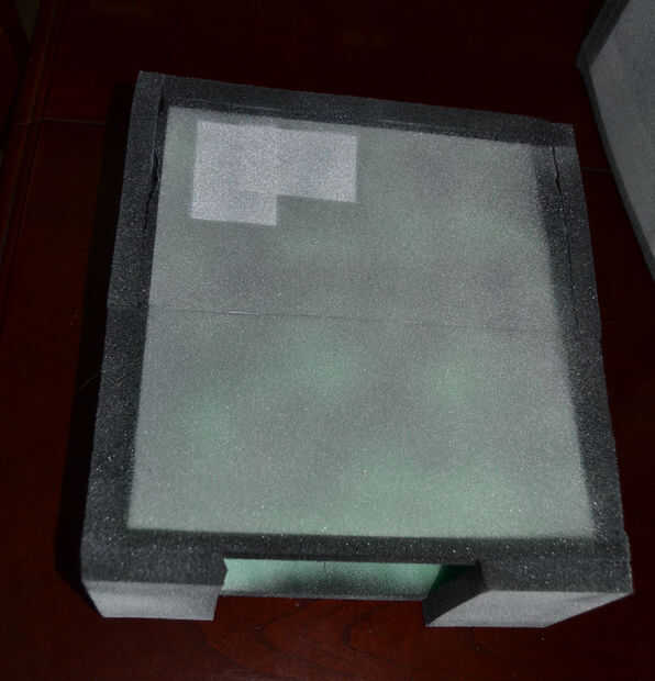El objetivo de este paso es hacer una 9 "x 4" x 8 "forma de caja de la espuma. Después de haber cortado las piezas espuma Coloque un rectángulo de 4 "x 8" sobre una superficie plana y proceden a pegar un lado de 8 "x 8" en la parte superior en el borde de lo 4 "x 8" asegurándose de que los extremos y los bordes de ambas piezas se alinean uniformemente. Pegar toda la longitud del borde de la espuma hacia abajo en una distancia corta de trabajo a la vez para evitar que el pegamento caliente enfriamiento demasiado rápido.