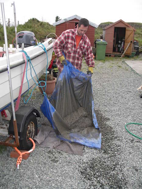 Es importante mantener la espalda recta mientras hace esto y rollo y levante la mezcla utilizando el poder de sus piernas. Tome la esquina correspondiente de la lona, doble las rodillas ligeramente manteniendo la espalda recta y pare, endereza las rodillas para levantar la mezcla. Debe inclinar adelante, tumbing sobre itrself, muy parecido a la acción dentro de una mezcladora cemento.