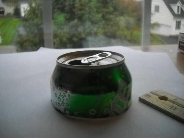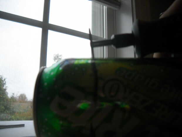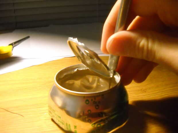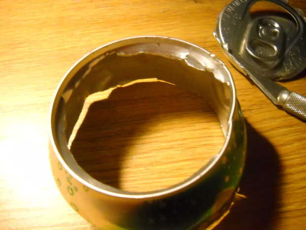 Con un cuchillo (una Dremel sería difícil de hacer), corte la parte superior de la lata en el interior.