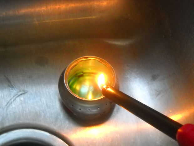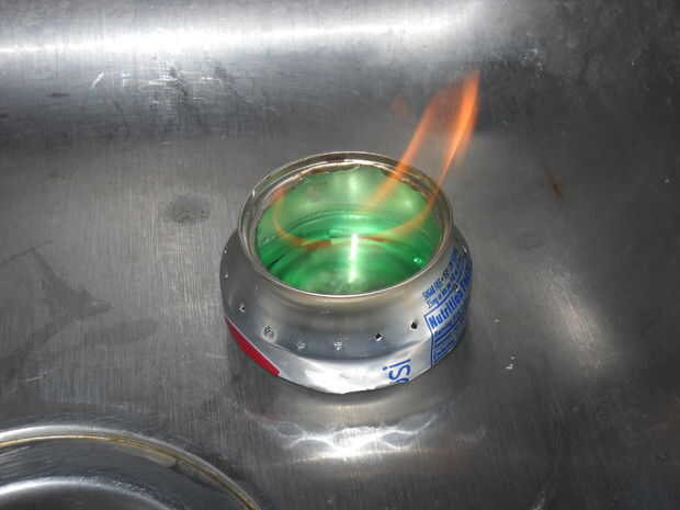 Para utilizar la estufa, primero llenarlo con combustible inflamable de su elección. Usé alcohol isopropílico al 70%. Llene a mitad de camino para que no inunde. Utilice un estilo barbacoa más ligera a la luz del alcohol. Después de que luz, parecerá más a la última foto, sin nada que salen los chorros. Después de algunos minutos, obtendrá lo suficientemente caliente como para vaporizar para combustible y como la primera foto.