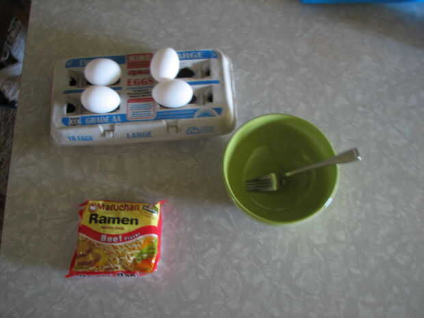 esto es una comida fácil y barata para que cualquiera pueda hacer. Hace poco tiempo para hacer, lo que es un buen ir a para largas noches.Paso 1: ingredientes Necesita pocos ingredientes:1. cebolla en polvo2. 2 paquetes de fideos ramen3. 3 huevos4. l