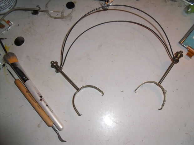 * Un par de auriculares de WWII-era viejo con monturas de conductor semicircular. Mina tenía una almohada de cabeza de cuero unida, pero fue severamente seco podrido para que nixed. El latón pulido para arriba con algunos brasso para que pudiera girar las tuercas, esperemos que el tuyo es en mejores condiciones. Eliminar los drivers antiguos y cajas metálicas. Si quieres probar y adaptar los casos driver, buena suerte. hay suficiente espacio para la membrana de celofán y algunos cables de cobre, probé.