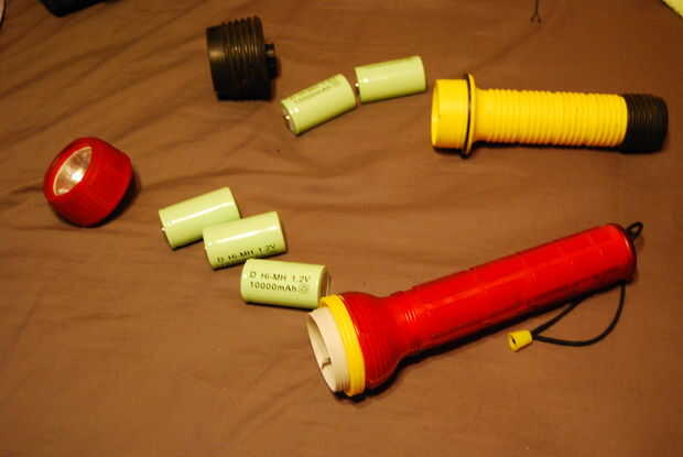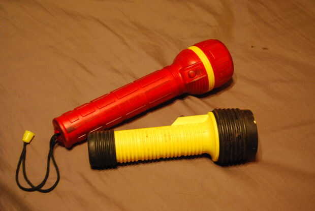 Linterna usada que utiliza una bombilla regular y 3 D pilas. Gratis.