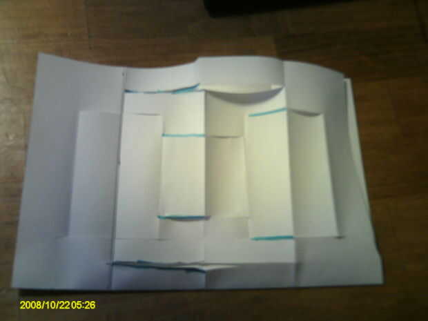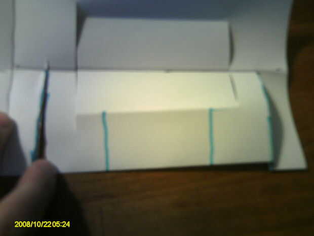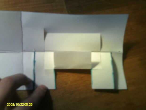 Por último corte a las líneas azules hasta la línea de doblez hecho en el paso reciente y doblar para arriba como los 2 últimos pasos. Después de que despliegue a la forma normal que el papel era cuando primero lo tienes (lo que parecía le gustaba antes de convertirse en un hot dog) y doble estilo hamburguesa como en la tercera foto.