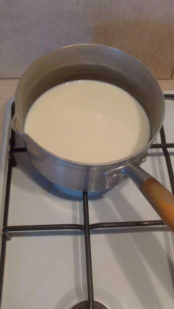 • En una sartén, calentar 1/2 litro de leche desnatada en el medio.