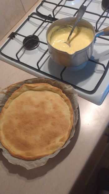 Cuando todo esté frío, aplique una capa (no delgada!) de crema sobre la masa.