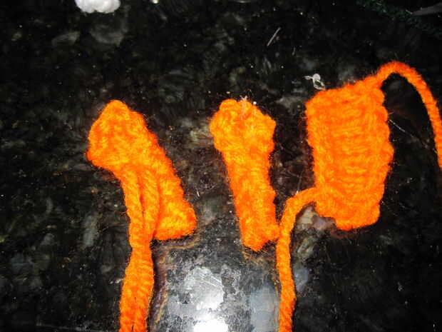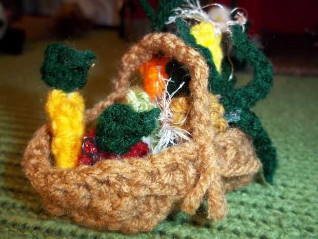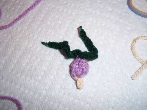Decorar la parte inferior de la cebolla con la piel de la diversión. La parte inferior del nabo es hilo beige. Hay una foto de ella. Las tapas son una cadena de ganchillo.