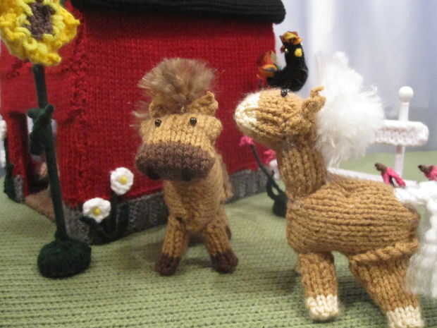 El caballo y la vaca tienen patrones muy similares. El caballo tiene nueve piezas, 4 patas, cuerpo, cuello, cabeza y 2 oídos. La cola y la crin se hacen usando el hacer hilo de la marca del León.