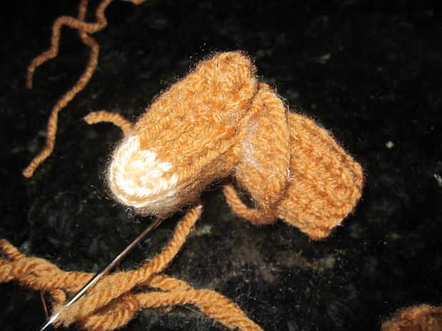 Coser la cabeza es la parte más difícil. Revisa las fotos que se adjuntan. El derecho contra derecho, dobla su punto hilo en medio de la zona de la nariz y coser por ambos lados. Gire la cabeza hacia el lado derecho y coser los lados de la parte superior de la cabeza.