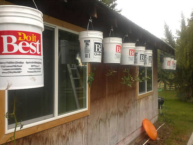 2) los ganchos. Encontrar el lugar que se cuelgue el tomate de la planta. El lado sur de su casa es probablemente el mejor, como se pondrá el sol la mayoría si no es sombra. Taladré los orificios primero.