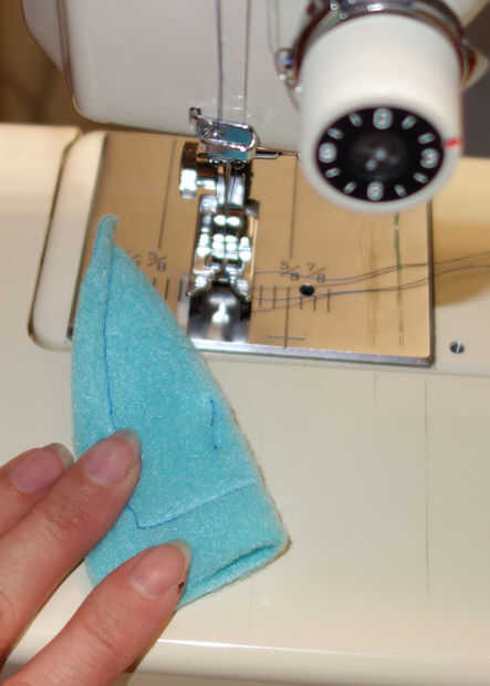 Doble una oreja por la mitad y coser una línea inclinada desde el doblez del centro hacia el extremo inferior.  Esto ayudará a la oreja para levantarse.