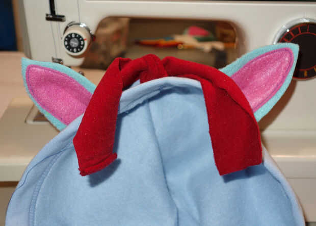 Colocar las orejas en la capucha y coser en su lugar.