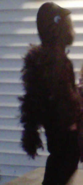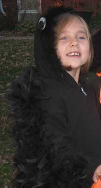 2. corte un triángulo de 'pico' del negro rígido fieltro. Coser y unas plumas en la parte superior de la campana. No tiene que ser perfecto!