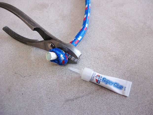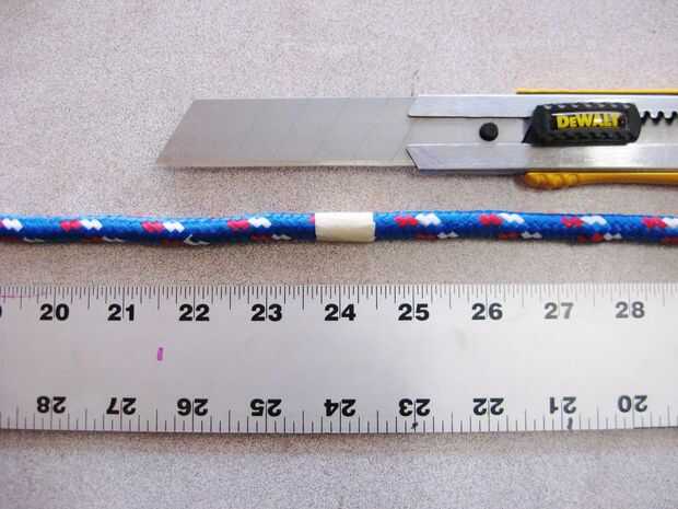 Para la cuerda de la remolque corté dos secciones de 5 pies de cuerda con los extremos acabados de la misma manera.