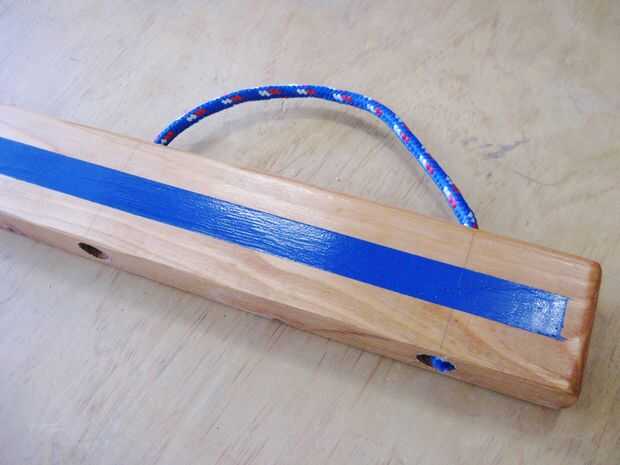 Enrosque cada manija arriba desde abajo y por el agujero correcto. Atar un nudo apretado y pegamento si se desea y tire del asa hacia arriba firmemente para asentar el nudo en el orificio inferior.