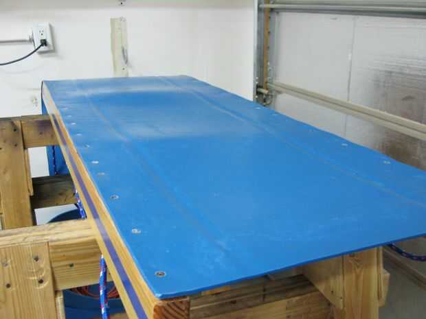 Ver foto uno. Tipo de He arreglado lo, pero la cola final del corredor había una curvatura hacia abajo bastante sustancial, que seguramente retrasó el tobogán en nuestra primera salida con ella. Para solucionarlo, calienta el plástico con un soplete hasta que era suave y flexible y luego sujeta una tabla que ha enfriado. Esto aplana lo en su mayor parte. Sin embargo, si tuviera que hacer esto otra vez, sería simplemente recortar los bordes inferior posterior de los tableros laterales como se indica, para que el final del corredor llamaradas de sólo un poco.