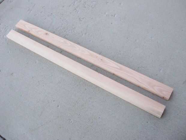 Hay dos llaves de madera que la longitud de la pista de trineo, de 60 pulgadas piezas de 2 x 4. Cualquier madera funcionará, como es amplio suficiente para agujerear los agujeros en la parte inferior para sujetar los extremos anudados de cualquiera que sea la cuerda utilizar (ver pasos más adelante para más detalles sobre esto).