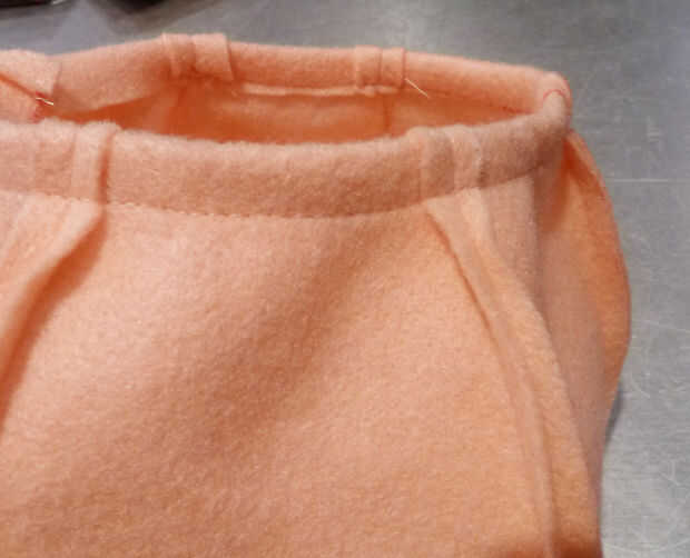 Para hacer la bolsa más robusto, giré el borde superior y había cosido abajo. Primero te desea determinar qué lado desea hacia fuera, luego gire el borde hacia el interior y coser abajo.