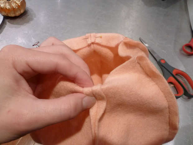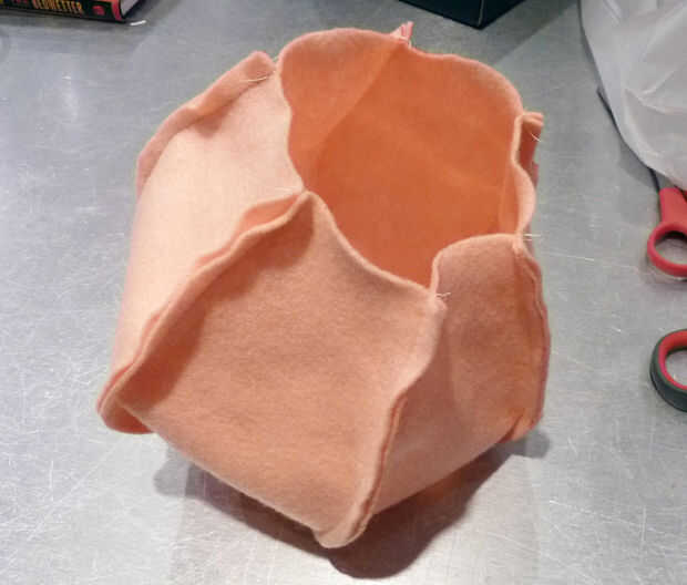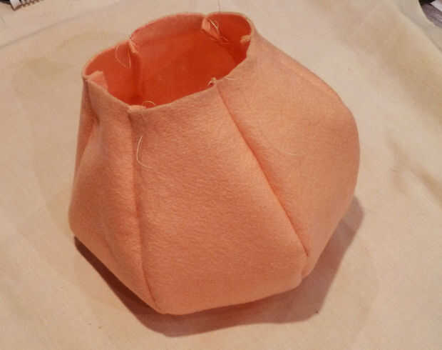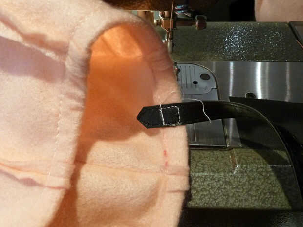 A continuación, agregar el mango cose firmemente al interior de la bolsa.