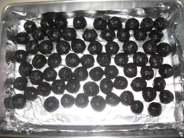 Si la masa es suave mientras esté haciendo las bolas, se aplanan en la parte inferior mientras se sienta en la bandeja y hacer una poco menos perfecta trufa, que realmente no me molesta y no es demasiado sensible a menos que la bola realmente se aplana.