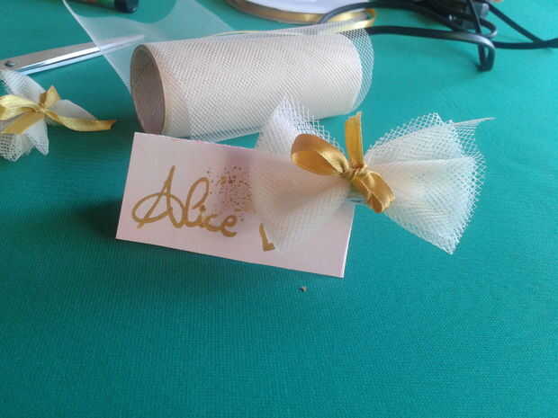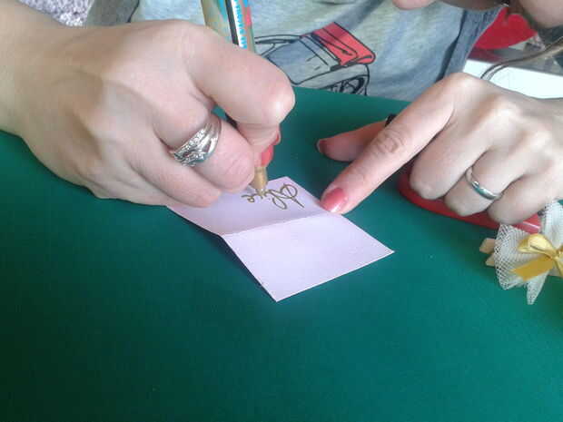 Ahora tomar la cartulina, doble por lo que a soporte en la tabla y escriba su nombre de invitado.