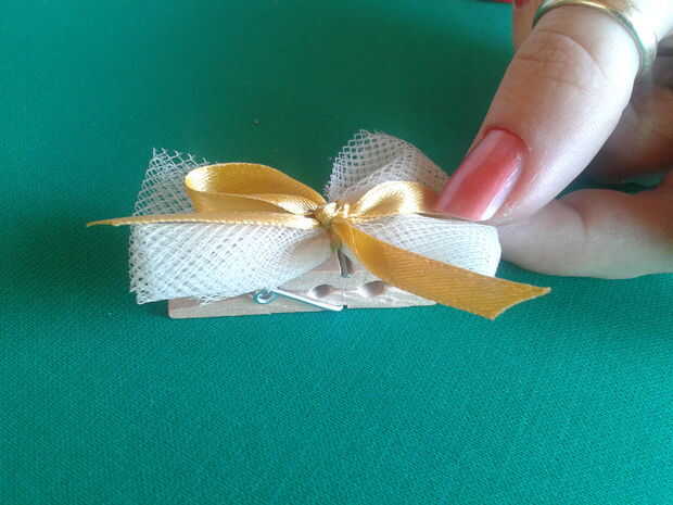 Tome la pinza y fíjelo al arco usando el pegamento caliente.