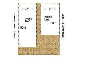Use el dibujo a continuación como una guía para trazar y cortar. Observe que cada pieza utiliza un orillo como uno de sus bordes.