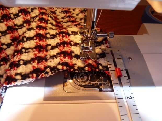 Con una puntada zigzag suficientemente amplia como para abarcar varios hilos de su tela, de punto de 1" de los bordes crudos. Desde un punto que bordea el orillo que terminarás en el otro extremo que limita con el orillo.
