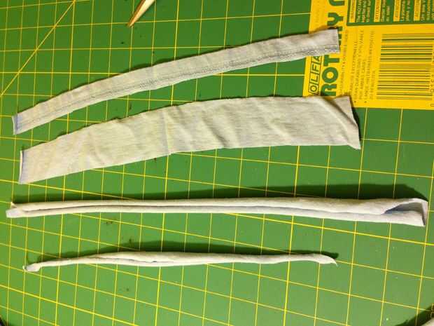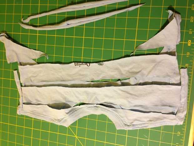 1. cortar tantas tiras como sea posible de la parte delantera y trasera de la pieza de cuerpo.