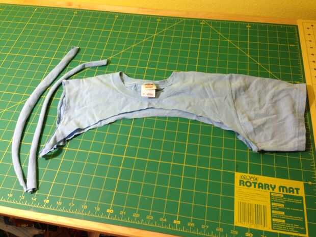 1. cortar la manga derecha a lo largo de la costura que une al cuerpo.