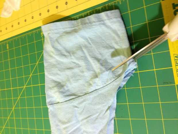 2. cortar la costura (que sería la axila) y aplanar la pieza de la manga.