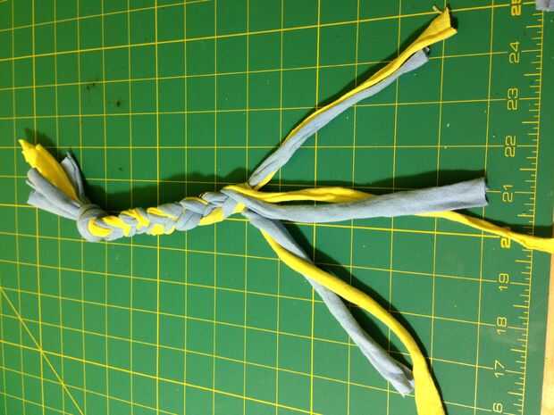 Se pueden utilizar 6, 9 o más tiras dependiendo de cómo grueso quieres el juguete que y cuánto sus tiras son. Las tiras más que desea utilizar, cuanto más tiempo tienen que ser para hacer más fácil atar en el extremo, así que jugar con él.