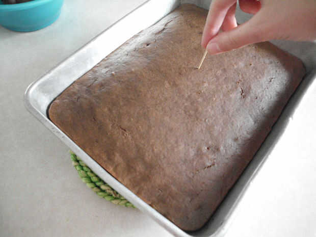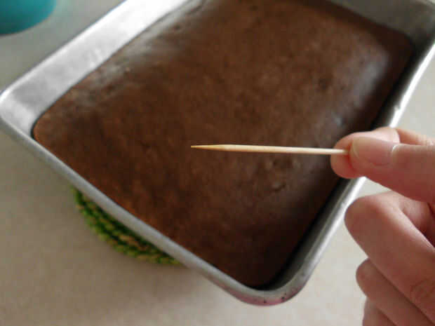 Después de los anillos de temporizador, sacar tus brownies (recuerda usar guantes para el horno). Usando un palillo limpio, inserte el palillo en el centro de los brownies. Si el palillo tiene masa en él cuando se saca, hornear unos minutos más y otra vez la prueba con un palillo de dientes. Si el palillo está limpio, sus brownies son perfectos. Bien hecho.