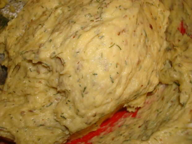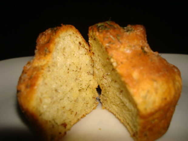 Hice el pan de eneldo con los mismos ingredientes como la receta base pero agrega 1/4 de taza de yogur griego, 1 cucharadita de eneldo y 1/8 taza de harina de linaza y había horneado en un molde de muffin. Tardó más que cuece al horno. Calculo 30 minutos a 340 grados F.
