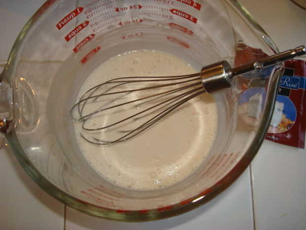 He añadido el paquete de levadura en la mezcla de harina a la leche y revuelve bien.
