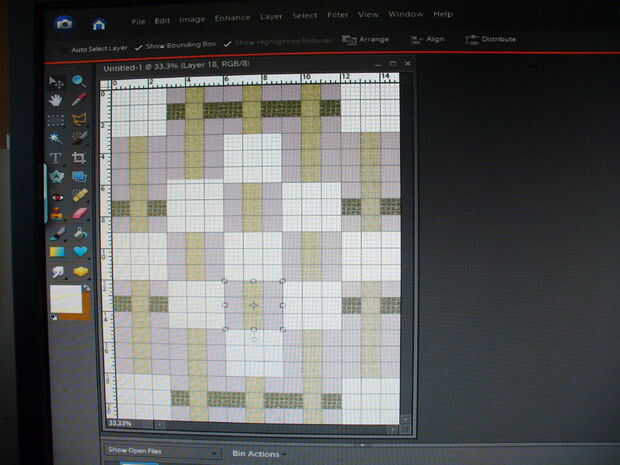 Voila! El diseño del edredón que ves me tomó aproximadamente una hora para diseñar, analizar y montar en Photoshop Elements 6.0. Cuando al principio miré ese montón de telas, estaba seguro que quisiera que lo iban a mirar como un tejido terminado. Ahora que mi diseño de colcha virtual es completa y puedo ver la colcha acabada como se verá, me encanta! Por supuesto hice un par de cambios a lo largo de la manera como estaba disponiendo de la colcha en el equipo... Me voy a agarrar mis tijeras y empezar a cortar.