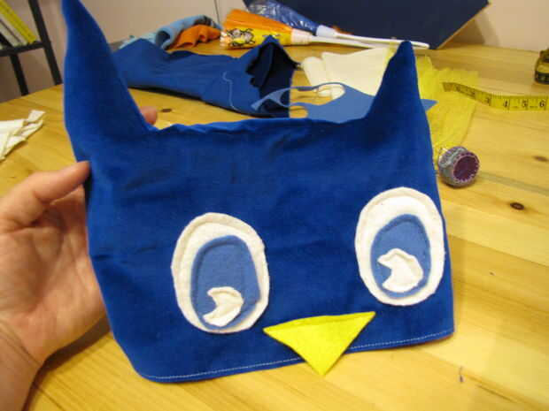 Dobladillar el borde inferior del sombrero. Pliegan su sombrero, derecho lados juntos y coser el lado y los penachos de las orejas y en la parte superior. Antes de dar vuelta derecha hacia fuera, cortar el exceso de los auriculares para que usted conseguirá un punto realmente puntiagudo cuando les resultan. Yo también relleno un poco de guata en cada oído para que se peguen encima de.