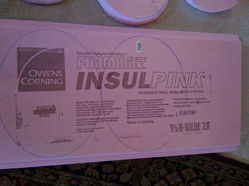Tablero de la espuma comprar en ferretería. Para este proyecto usé 2 x 8 hojas de Owens-Corning InsulPink.